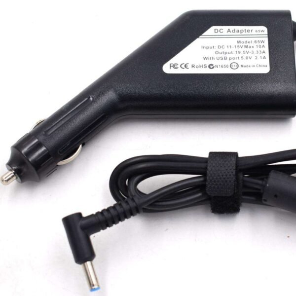 The 65W HP Laptop Car Charger is a dependable in-car power solution for HP notebooks with a 4.5×3.0mm blue pin connector. Delivering a stable 19.5V 3.33A output, it ensures safe and efficient charging while driving. Built-in over-voltage, over-temperature, and short-circuit protection provide added safety. Compact, lightweight, and durable, it is ideal for travel, office use, and emergencies.