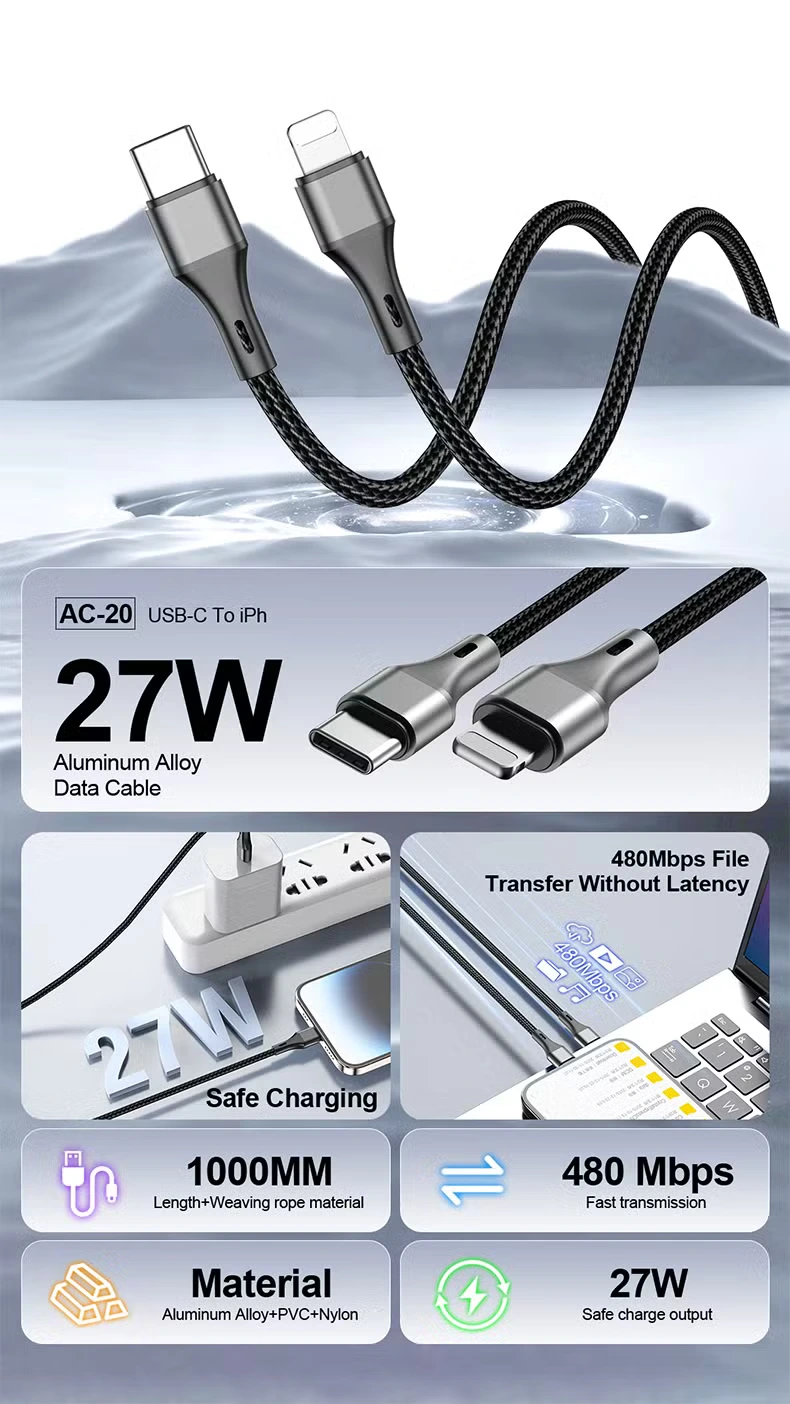The ASPOR AC-20 USB-C to Lightning Cable is designed for users who demand fast charging, reliable data transmission, and long-lasting performance. Built with a premium nylon-braided exterior and high-quality internal wiring, this cable ensures safe, efficient power delivery and stable syncing for your Apple devices.